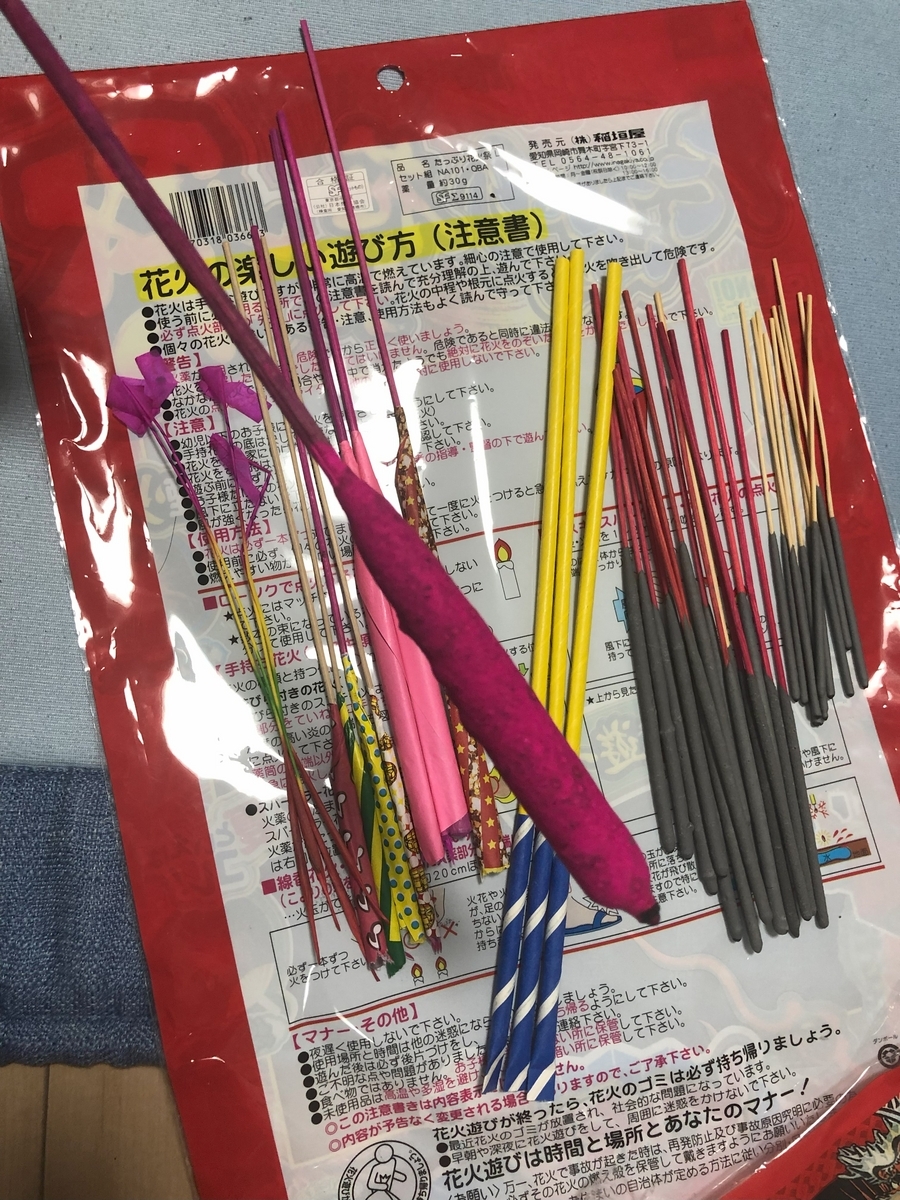 娘の夏休み最後の日は家族で花火をしました。